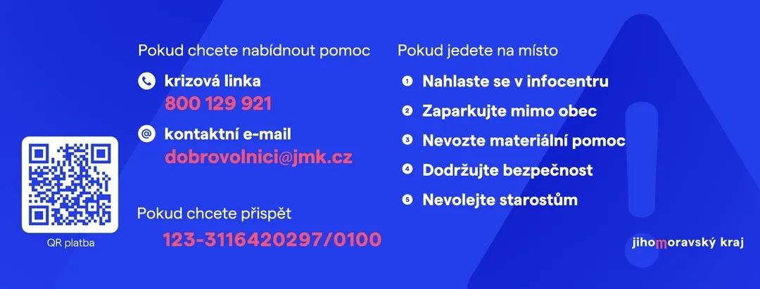 Prosíme obyvatele Zlínského kraje, aby zatím nejezdili do postižených oblastí a nekomplikovali zásah záchranných složek. Na dobrovolníky a další pomoc přijde čas. Děkujeme.