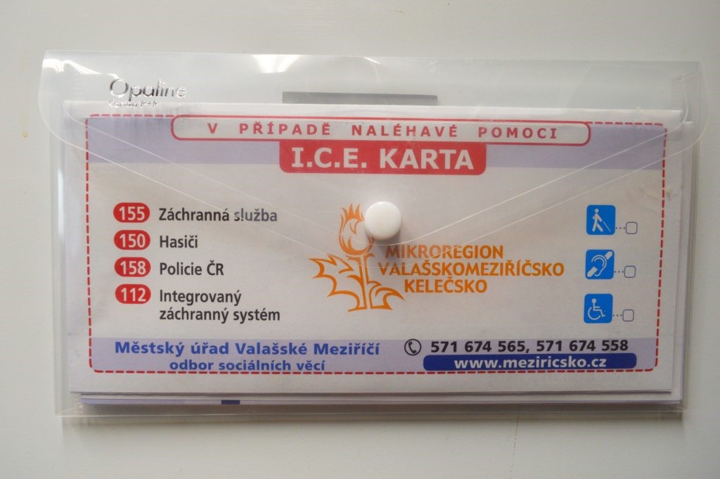V nouzi vám pomůže jen správně vyplněná I.C.E. karta. Pečlivě si přečtěte Pravidla pro vyplnění, která vám byla předána spolu s obálkou a kartou. Neváhejte požádat o pomoc své příbuzné, pracovníky odboru sociálních věcí Městského úřadu Valašské Meziříčí (tel. 571 674 558 nebo 571 674 565) nebo pracovníky sociálních služeb (např. z Diakonie ČCE – středisko ve Valašském Meziříčí, Diakonie ČCE – hospic Citadela, Domova pro seniory Valašské Meziříčí a Charity Valašské Meziříčí). Pamatujte, že jedny z nejdůležitějších informací jsou pro záchranáře kontakty na blízké osoby. I.C.E. kartu pravidelně aktualizujte, je velmi důležité, aby informace nezastarávaly.
