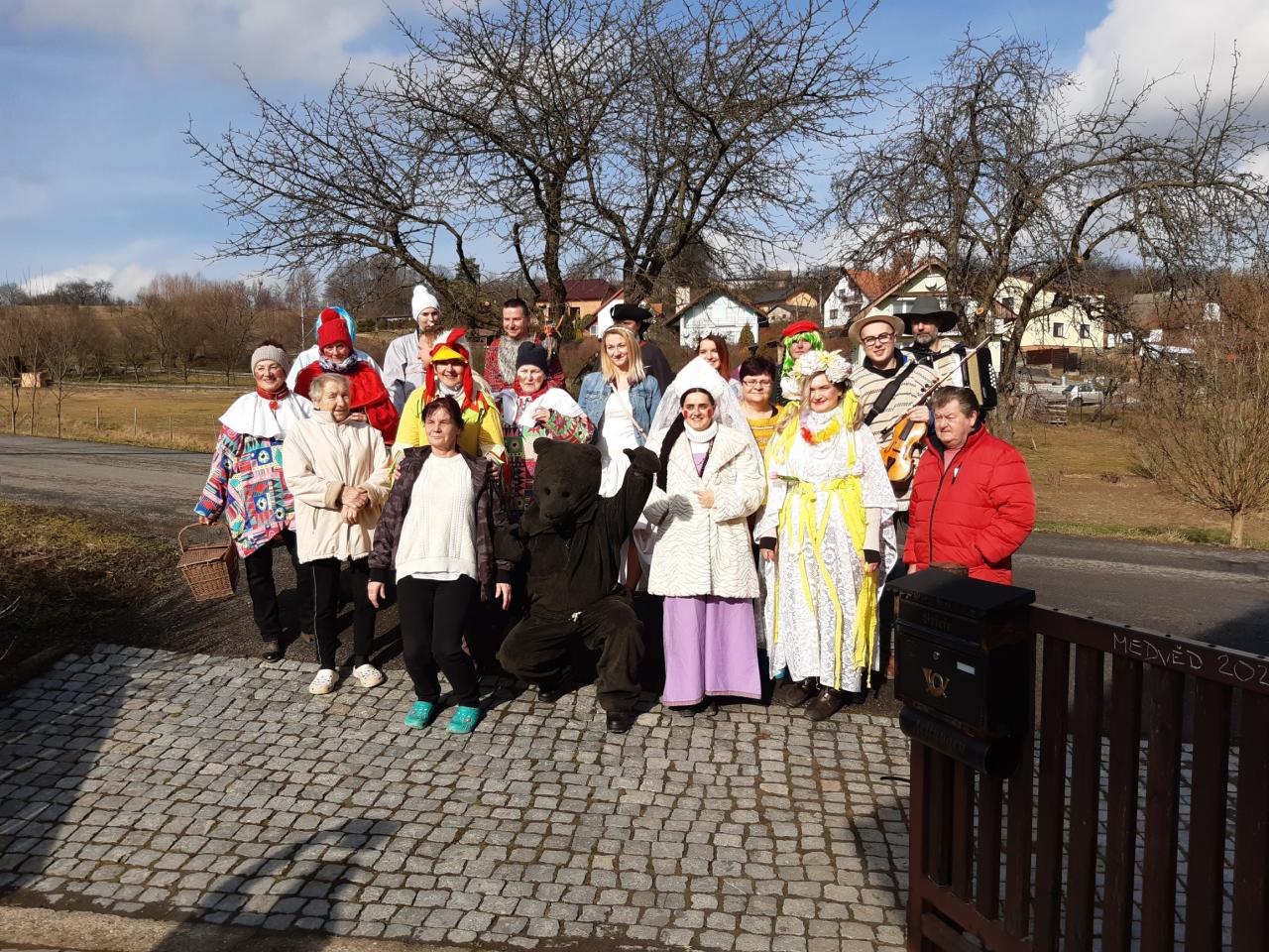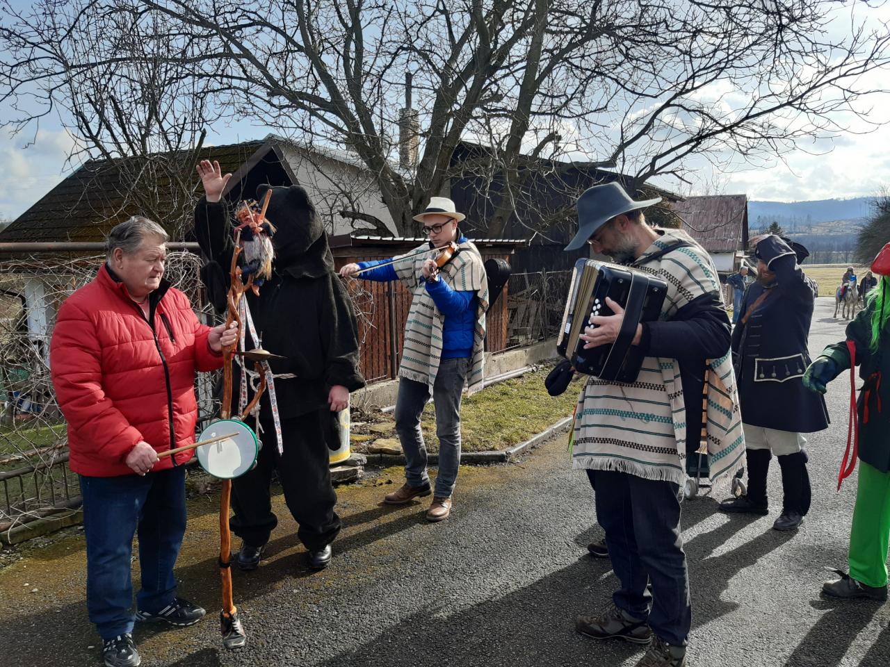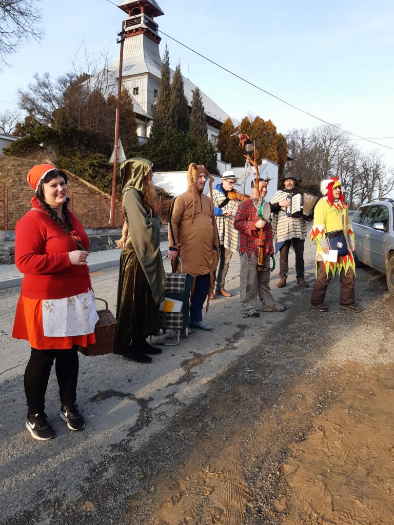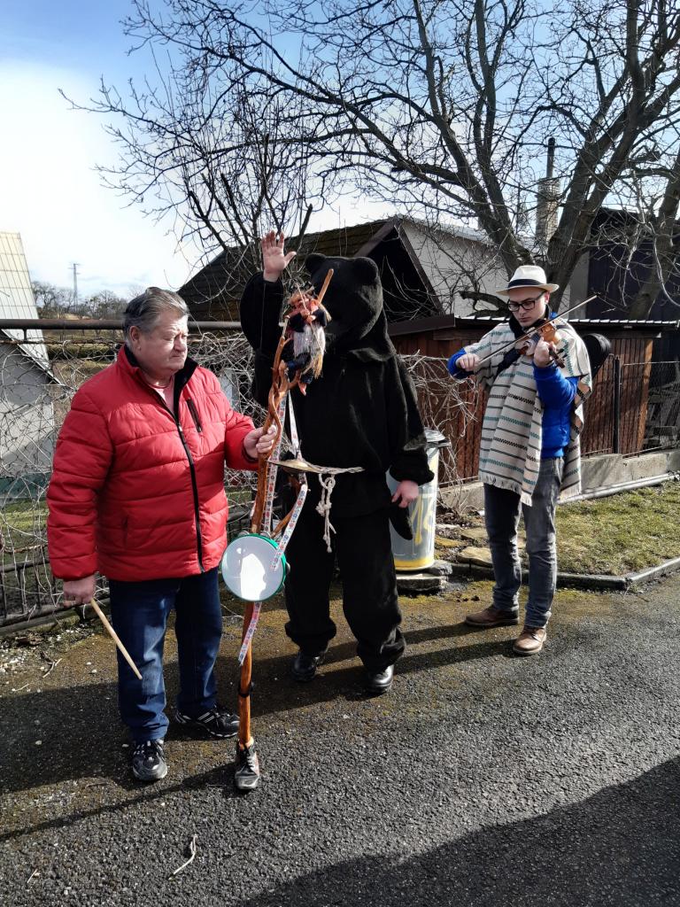 Tydli fidli bumtarata, otevřete kmotře vrata! Maškary k vám přišly, hej, začal masopustní rej.