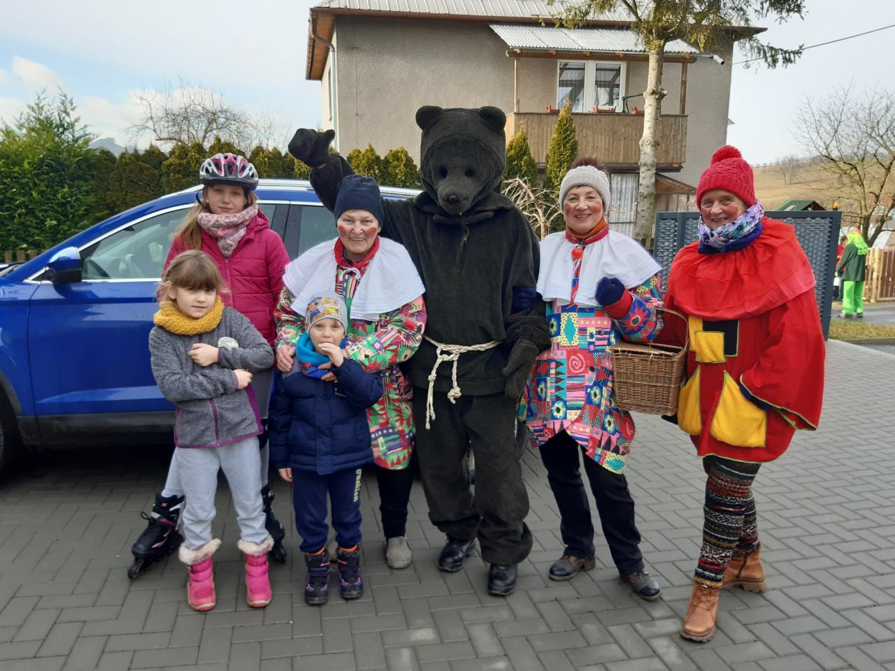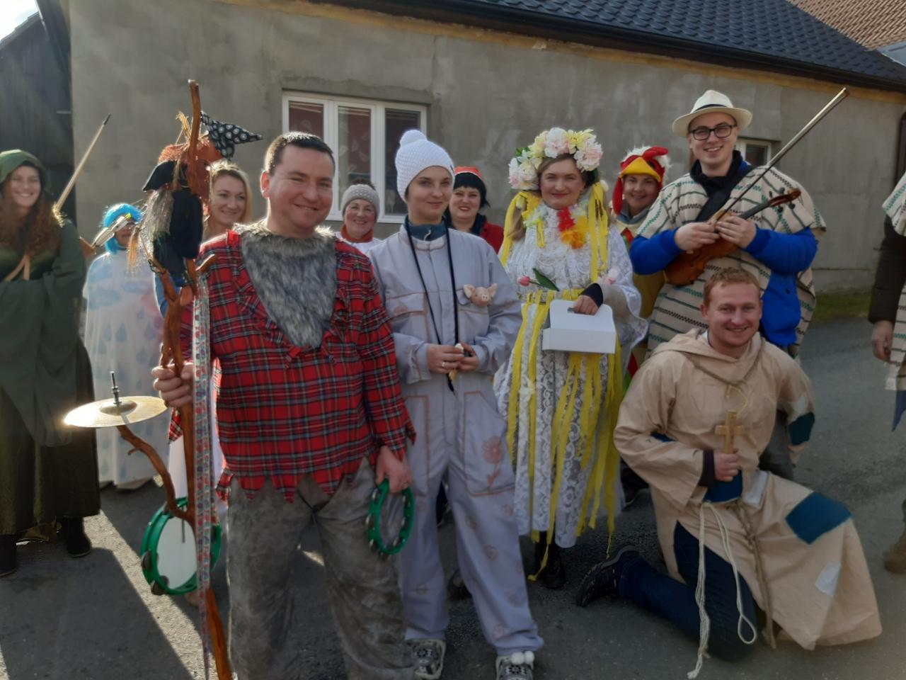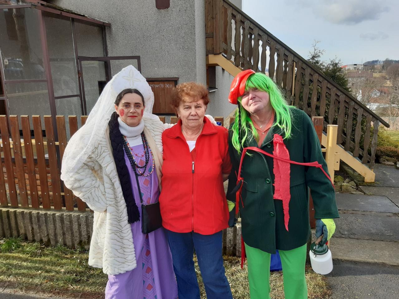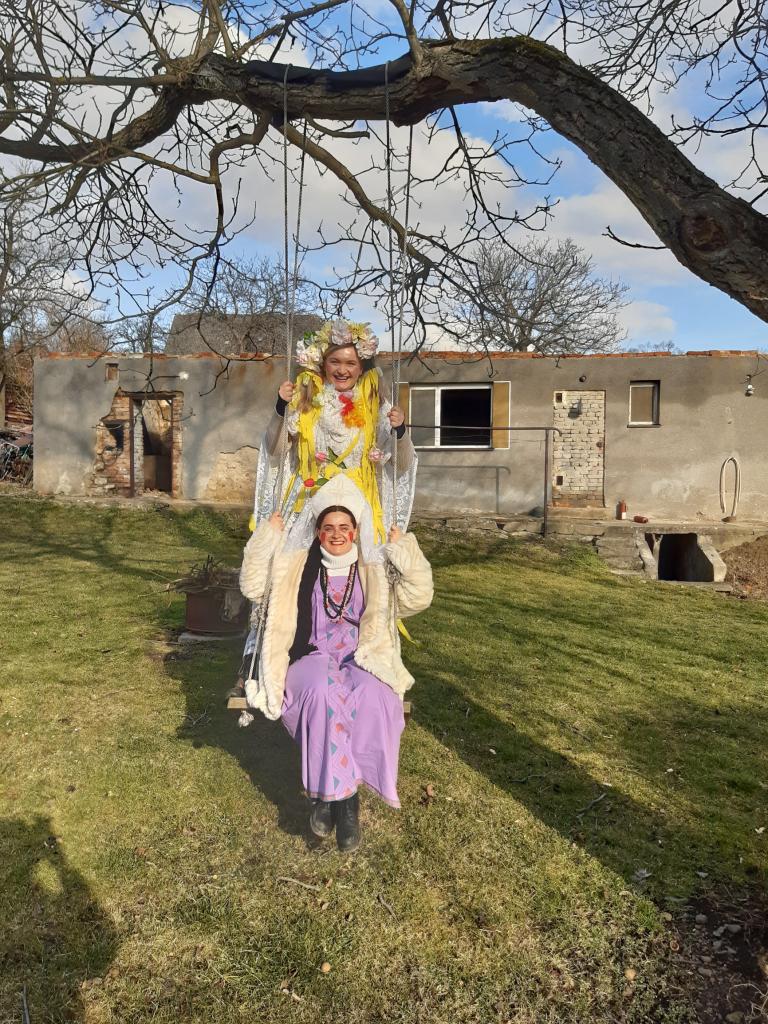 Tydli fidli bumtarata, otevřete kmotře vrata! Maškary k vám přišly, hej, začal masopustní rej.
