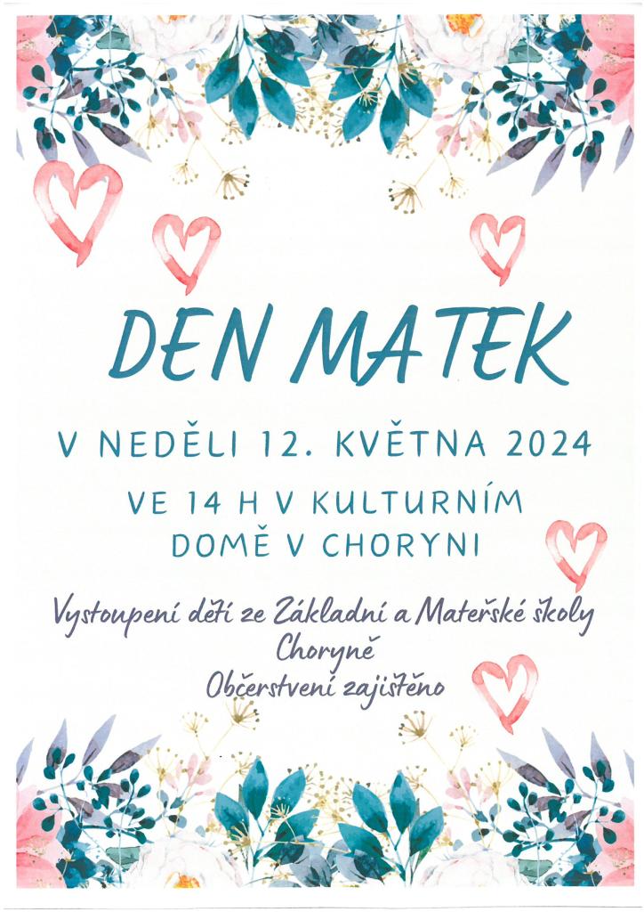 Vystoupení dětí ze ZŠ a MŠ Choryně. Občerstvení zajištěno.