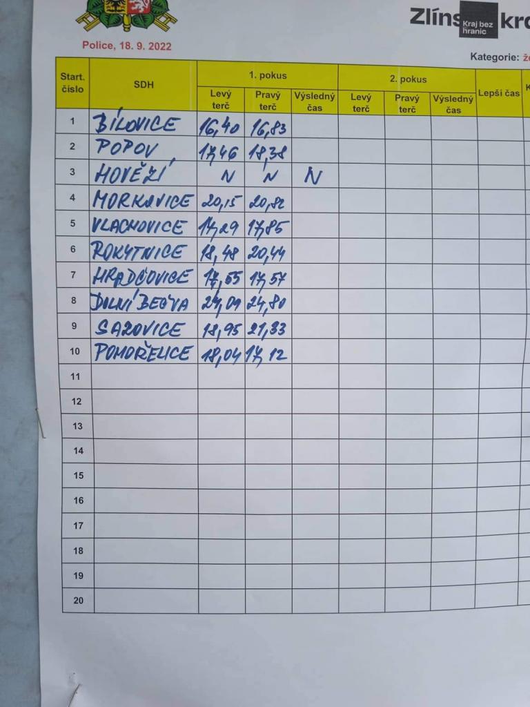 V neděli 18. 9. 2022 proběhl 21. ročník hasičské soutěže "O zlatý pohár hejtmana Zlínského kraje". Prestižní soutěž se letos uskutečnila ve sportovním areálu TJ Police. Soutěžící družstva přivítal starosta obce pan Karel Hlavica, ředitel HZS Zlísnkého kraje Ing. Vít Rušar a starosta KSH Zlín bratr Vlastimil Nevařil. Síly si změřilo 10 družstev mužů a 10 družstev žen. Celková atmosféra i přes nepříznivé počasí byla skvělá, stejně jako výsledky soutěžících družstev. Putovní poháry a ostatní ceny pro účastníky přijel osobně předat hejtman Zlínského kraje Ing. Radim Holiš. Velké poděkování za přípravu soutěže patří pořadatelům z TJ Police, SDH Police a za zajištění občerstvení Jindřichovi Svobodovi.