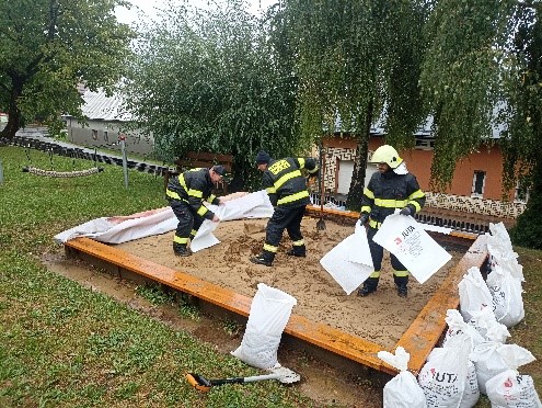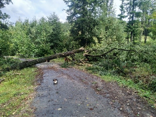 a potřebnými věcnými prostředky. Stále jsme v době čekání doufali, že se předpověď nevyplní a výstraha meteorologů vyšumí do prázdna. Bohužel se tak nestalo a již v pátek v odpoledních hodinách jsme vyjížděli k prvním událostem. V průběhu víkendu jsme prováděli tyto činnosti: odstraňování spadlých stromů, pytlování písku