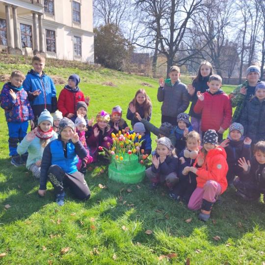 Následující den jsme se společně s dětmi z mateřinky přemístili na zámek v Lešné u Valašského Meziříčí. Program Velikonoce na zámku nám připomenul tradiční zvyky, které dodržovali naši předci. Vynesli jsme morenu, klapotali na celý zámecký park, malovali kraslice a ochutnali mazanec. A co jsme se dozvěděli ve druhé části programu s názvem Poklady jara? Jaké rostliny na jaře kvetou, kteří ptáčci se k nám vracejí z teplých krajin a jak je poznáme podle hlasu.